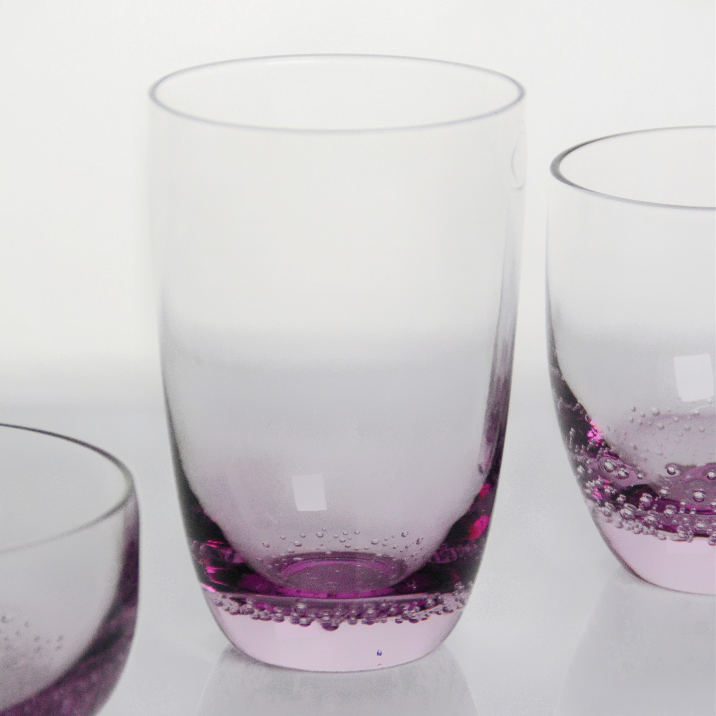 Ogni pezzo e' accuratamente soffiato a mano da abili artigiani, con delicate bolle intrappolate che catturano la luce e una sfumatura di lavanda che svanisce da una ricca,viola romantica alla base per pulireRealizzato in cristallo privo di piombo di alta qualità, questo set bilancia eleganza e durata:la struttura leggera ma robusta ne assicura la praticità per l'uso quotidiano e la bellezza per le occasioni speciali.