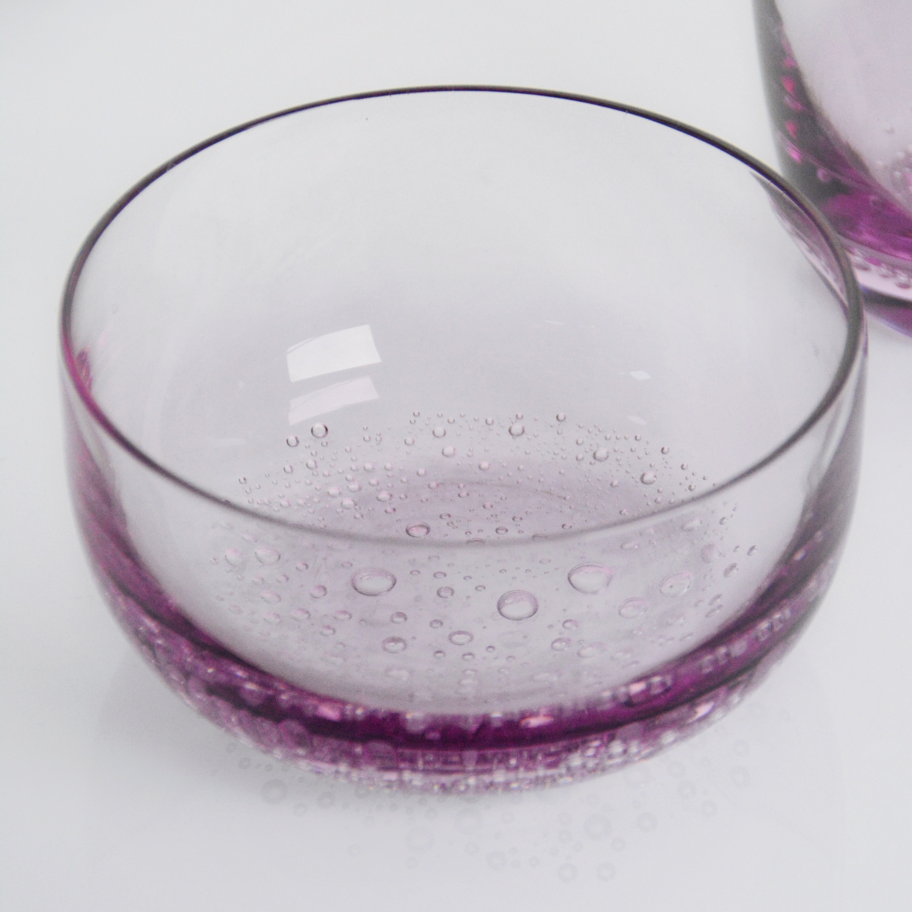 Le ciotole presentano le caratteristiche bolle intrappolate e il morbido gradiente lavanda-chiaro, con una base robusta e arrotondata che si sente comoda in mano.o anche il tuo caffè del mattino., portano un po' di colore romantico ai momenti quotidiani.